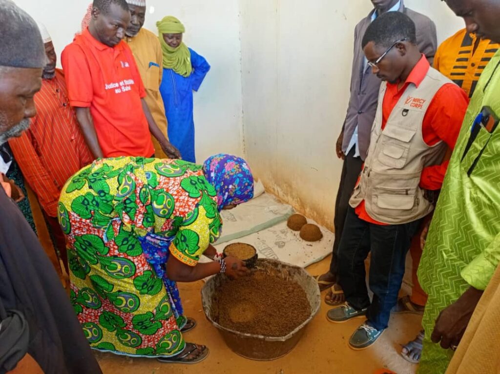 Séance de formation sur l’enrichissement de l’aliment bétail (Photo : Mercy corps).